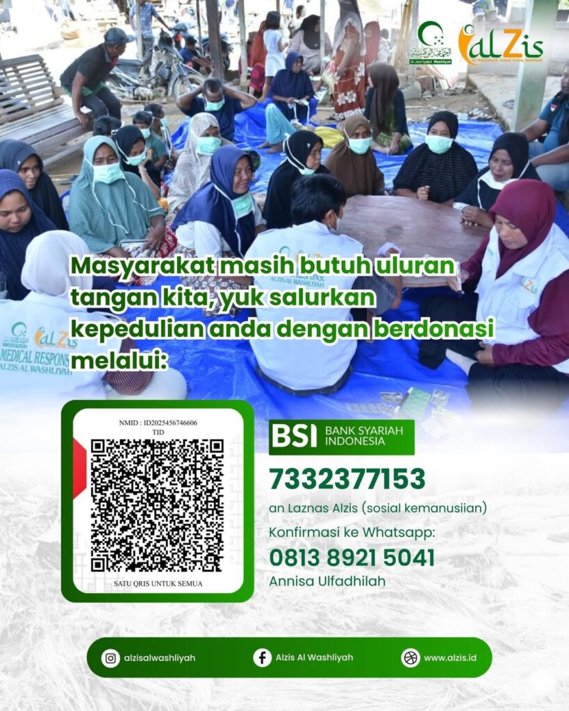Merespons situasi ini, relawan Laznas Alzis Al Washliyah hadir langsung di lokasi terdampak untuk memberikan bantuan kemanusiaan. Fokus utama bantuan meliputi layanan kesehatan, perawatan luka ringan, serta pendampingan bagi kelompok rentan seperti anak-anak dan lansia. Kehadiran relawan diharapkan dapat membantu meringankan beban warga sekaligus memberikan rasa aman di tengah situasi pascabencana.
