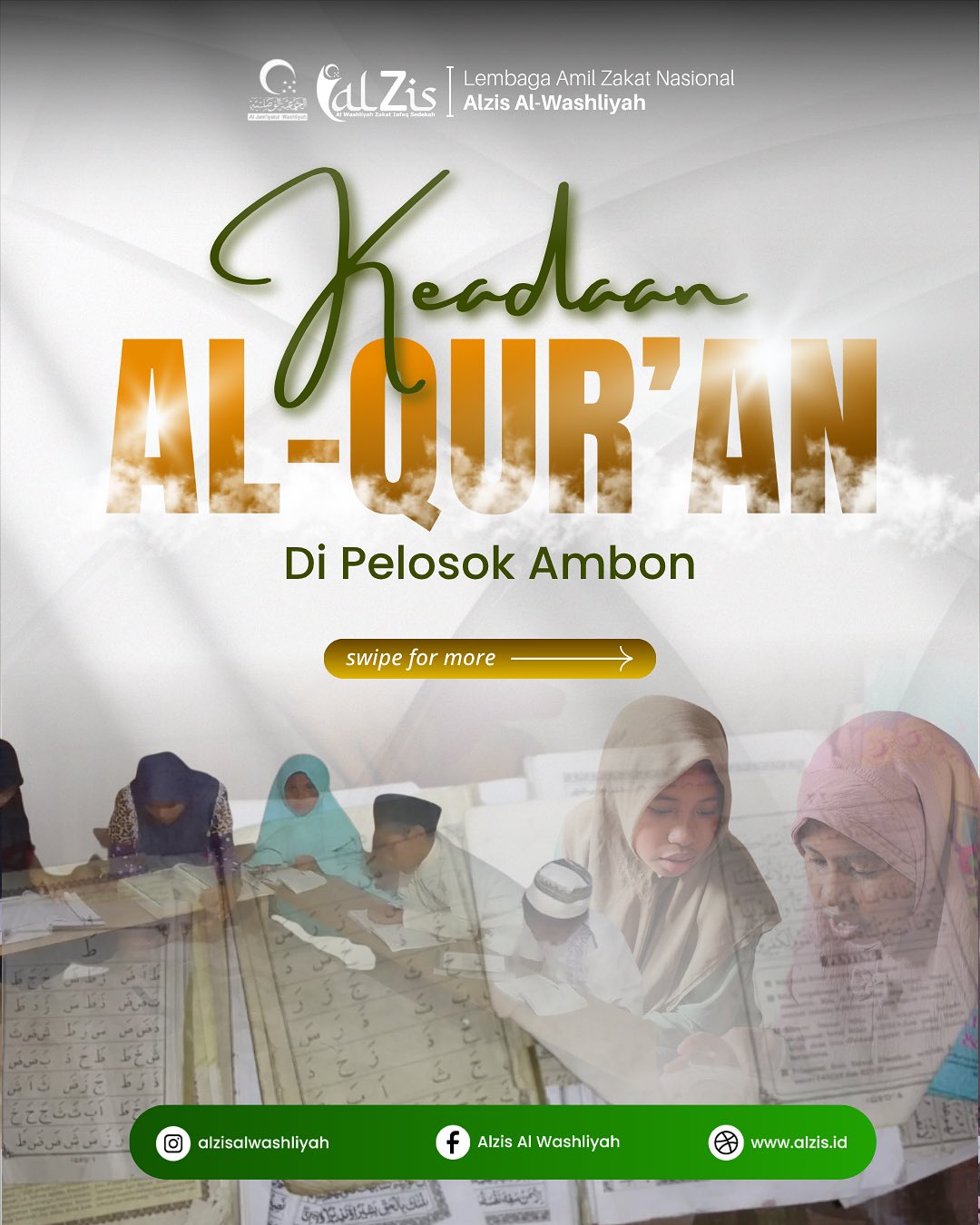 Mari bersama Lembaga Amil Zakat Nasional (LAZNAS) Alzis Al Washliyah menyalakan cahaya Al-Qur’an hingga ke pelosok Ambon. Satu mushaf yang Anda sedekahkan akan menjadi sumber cahaya dan pahala yang terus mengalir, menerangi kehidupan mereka kini dan nanti.