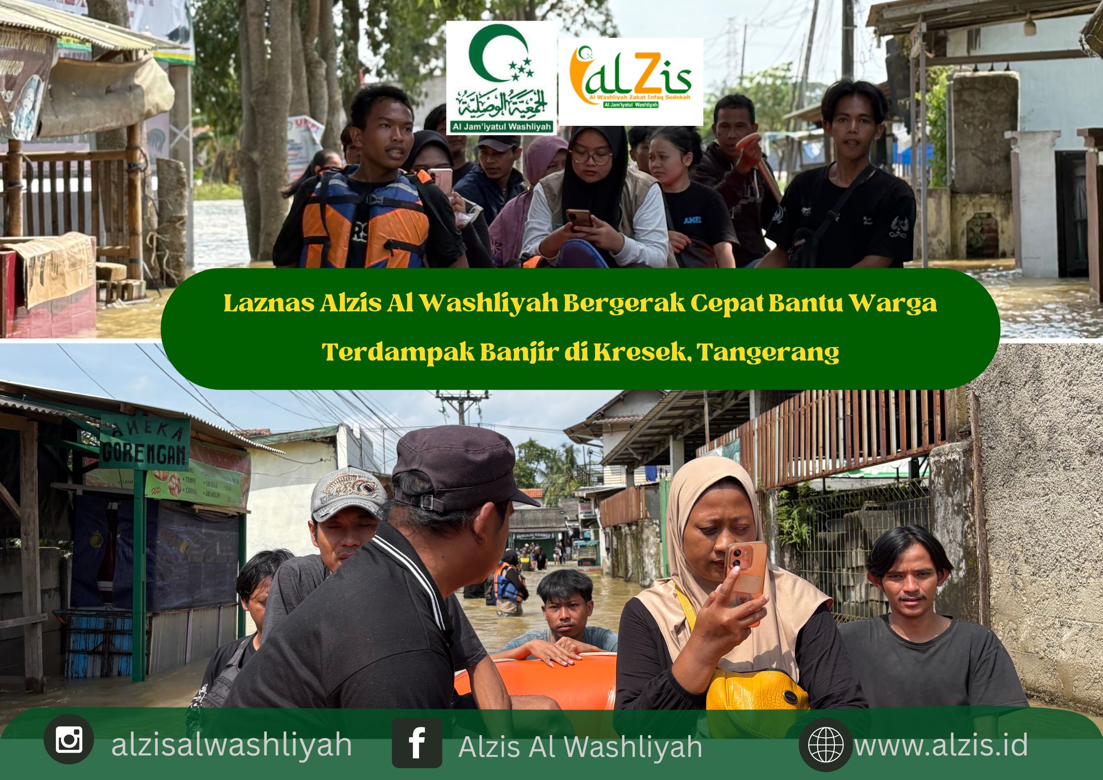 Tangerang, 25 Januari 2025 — Laznas Alzis Al Washliyah bergerak cepat melakukan respons kemanusiaan di wilayah Kabupaten Tangerang. Hujan deras yang mengguyur kawasan tersebut selama beberapa hari terakhir dengan curah hujan tinggi mengakibatkan banjir di sejumlah permukiman warga. Salah satu wilayah yang terdampak cukup parah berada di RT 10 RW 04, Kelurahan Patrasana, Kecamatan Kresek, Kabupaten Tangerang.