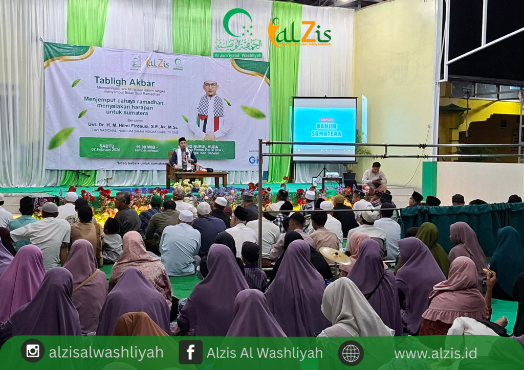 Dalam semangat memperingati Isra Mi’raj Nabi Muhammad SAW sekaligus menyambut datangnya Bulan Suci Ramadhan, Laznas Alzis Al Washliyah menggelar Tabligh Akbar bertema “Menjemput Cahaya Ramadhan, Menyalakan Harapan untuk Sumatera.” Kegiatan ini menjadi ruang silaturahmi, penguatan iman, sekaligus ajakan nyata untuk berbagi kepada sesama.